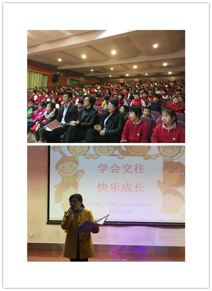 二年级第二学期的主题活动《学会交往,快乐成长》的启动仪式在云山礼堂举行