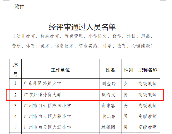 经广州市中小学高级教师职称评审委员会评审通过,下列教师拟取得高级职称,现予公示。