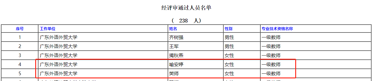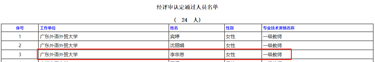 经广州市白云区中小学一级教师任职资格评审委员会评审、评审认定通过,下列同志拟取得中级专业技术资格,现予公示。若对下列同志取得资格有异议,请电话或书面向中级专业技术资格评审委员会办公室或人事职改部门反映,反映情况的电话和书面材料要自报或签署(手写)真实姓名,不报或不签署真实姓名的,一律不予受理。