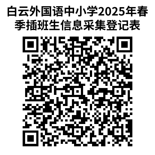 广州市白云区白云外国语中、小学(原广外附属中、小学)为满足家长对优质教育资源的需求,根据我校现有剩余学位情况,现面向社会招收少量插班生。