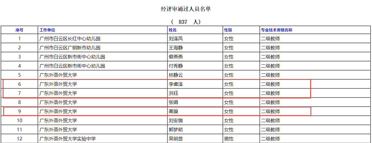 经广州市白云区中小学二、三级教师任职资格评审委员会评审通过,下列同志拟取得初级专业技术资格,现予公示。若对下列同志取得资格有异议,请电话或书面向评审委员会办公室反映,反映情况的电话和书面材料要自报或签署(手写)真实姓名,不报或不签署真实姓名的,一律不予受理。