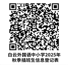 广州市白云区白云外国语中、小学(原广外附属中、小学)为满足家长对优质教育资源的需求,根据现有学位情况,现面向社会招收少量插班生。