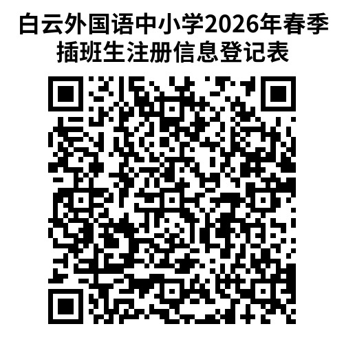 2026年春季学期,白云外国语中小学部分年级有少量空余学位,现面向社会招收插班生,欢迎报名入读。