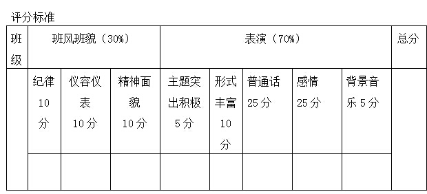 3、核算办法:评委们的评分去掉一个最高分和一个最低分后求平均分,即班级得分。