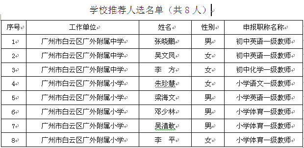 附:学校推荐申报一级教师职称人选名单(共8人)