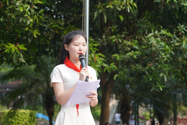 大队辅导员吴海菁老师带领同学们呼号,“时刻准备着”的呼声响彻云霄。