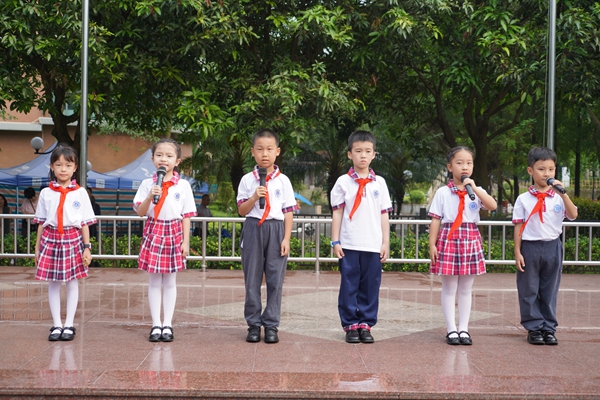 一1班周颖硕、一2班邹佳洋、一3班薛浩辰、一4班林俊宇、一5班王菡朵、一6班张云清六位同学作为新队员代表发言,表达了入队后的喜悦心情,也表示今后将努力学习,做一名优秀的少先队员。