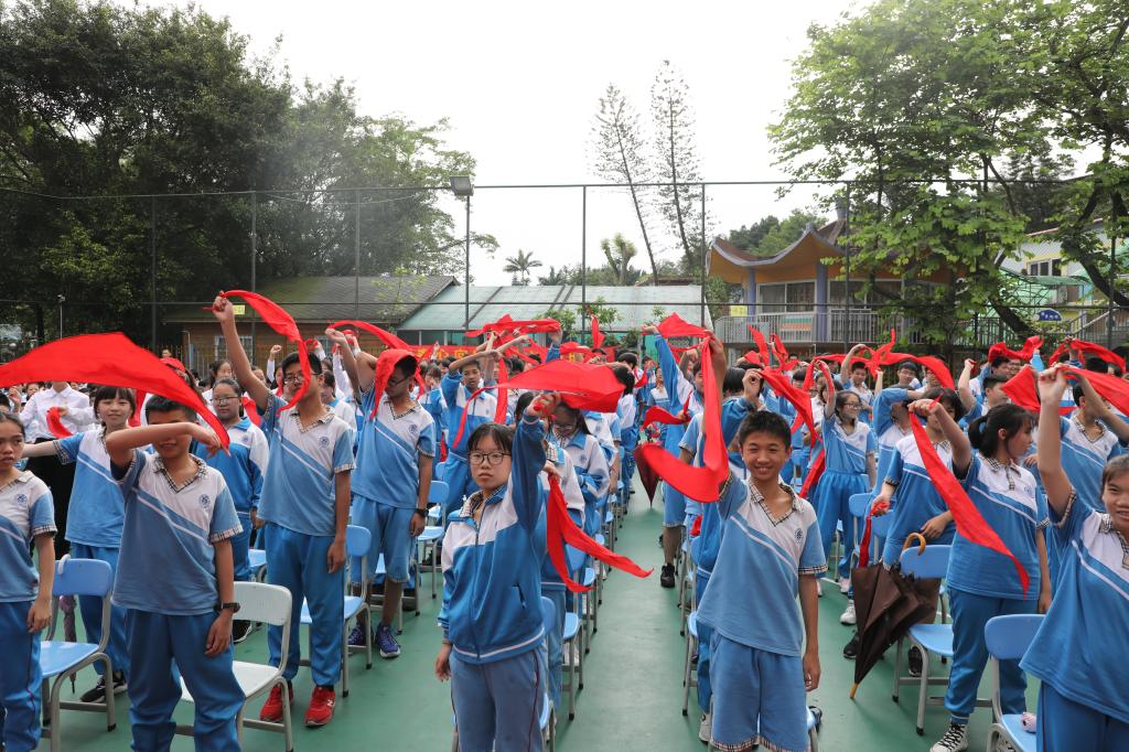 接下来,在大队长、学生会副主席谭力桐同学的带领下,全体少先队员一起用高亢与嘹亮的嗓音重温入队誓词,团委书记王琪老师带领大家呼号,少先队员们童年入队的情形再现。在呼号后,八年级的少先队员们将自己心爱的红领巾摘下,好好珍藏。