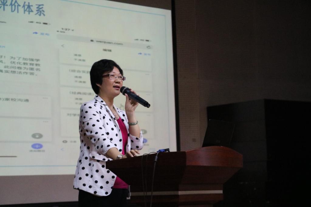 会上张慧华校长助理代表学校感谢家长一直以来对学校的大力支持,然后从活动育人、外语能力、艺体素养、科技创新四个方面介绍了学校的办学特色,办学思路和教育新理念,在不断完善提升教学体系与教学综合能力的同时倡导活动育人,在立足于课堂主阵地的基础上给学生更多、更大的舞台,并向家长提出了一些教育孩子的建议:投入、倾听和反馈。