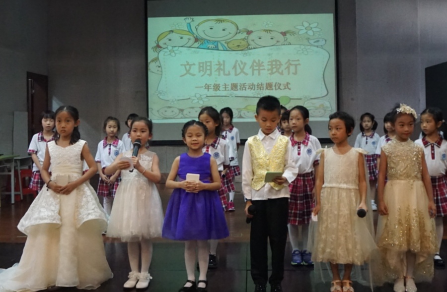 本网讯 为了培养学生良好的文明礼仪习惯,养成高尚的思想道德素质,6月27日下午第七节课,一年级全体师生齐聚云山礼堂,举行了“文明礼仪伴我行”主题活动结题仪式。参加本次活动的领导有学生处余凤副主任,大队辅导员吴海菁老师。