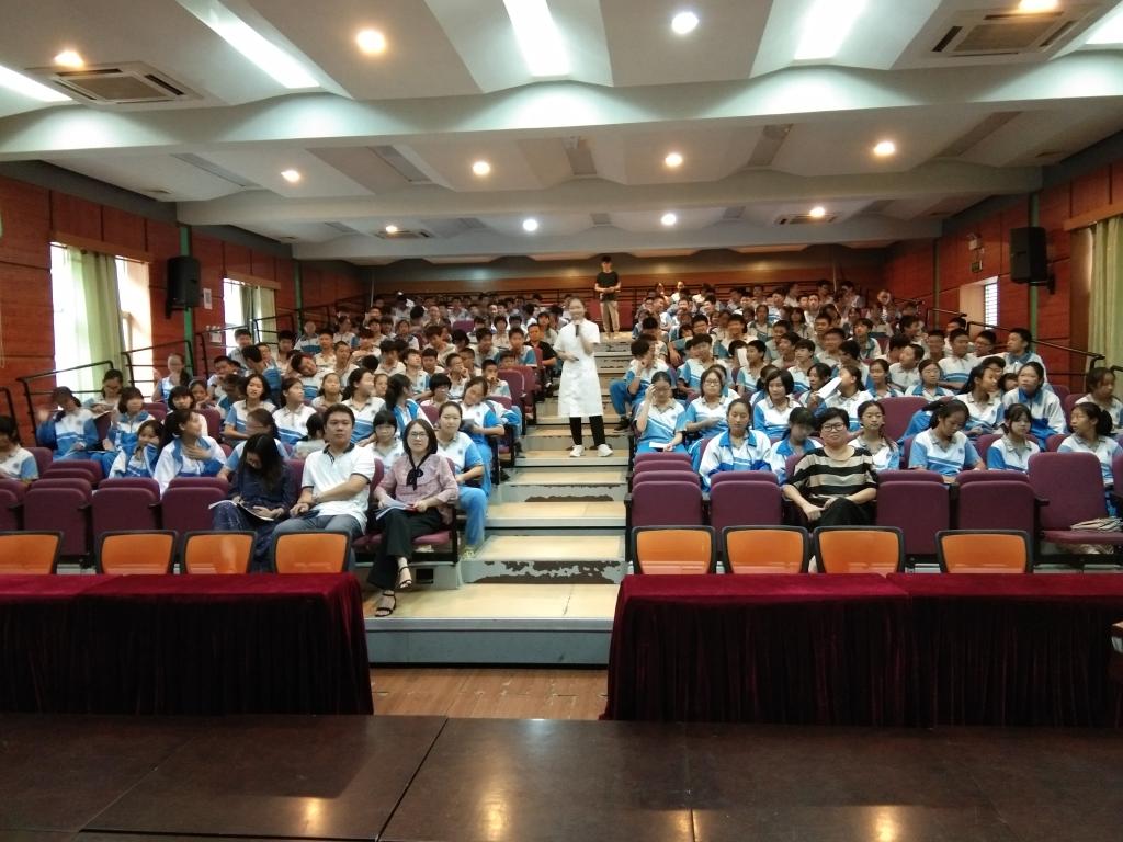 本网讯 根据上级卫生部门和学校传染病防治工作的安排,为了更好地开展传染性的预防工作,提高预防传染病的能力,9月18日,广州市教育局、广州医科大学、广州市中小学卫生健康促进中心联合我校举办了广州市“健康教育进校园”系列实践活动,在我校进行卫生知识宣传教育讲座。我校中学部初二年级师生共计约200人在云山礼堂参加了培训。