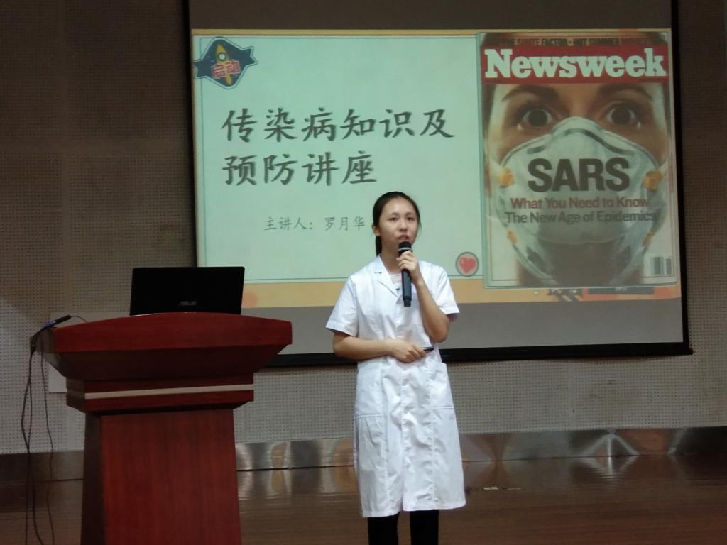 培训会上,主讲人罗月华作了“传染病知识及预防讲座”,分别从传染病的定义、传播途径、类型等方面进行了深入浅出的讲解,使学生明确了传染病产生的三个条件(传染源、传播途径和易感人群),并了解到了相关的防治措施。