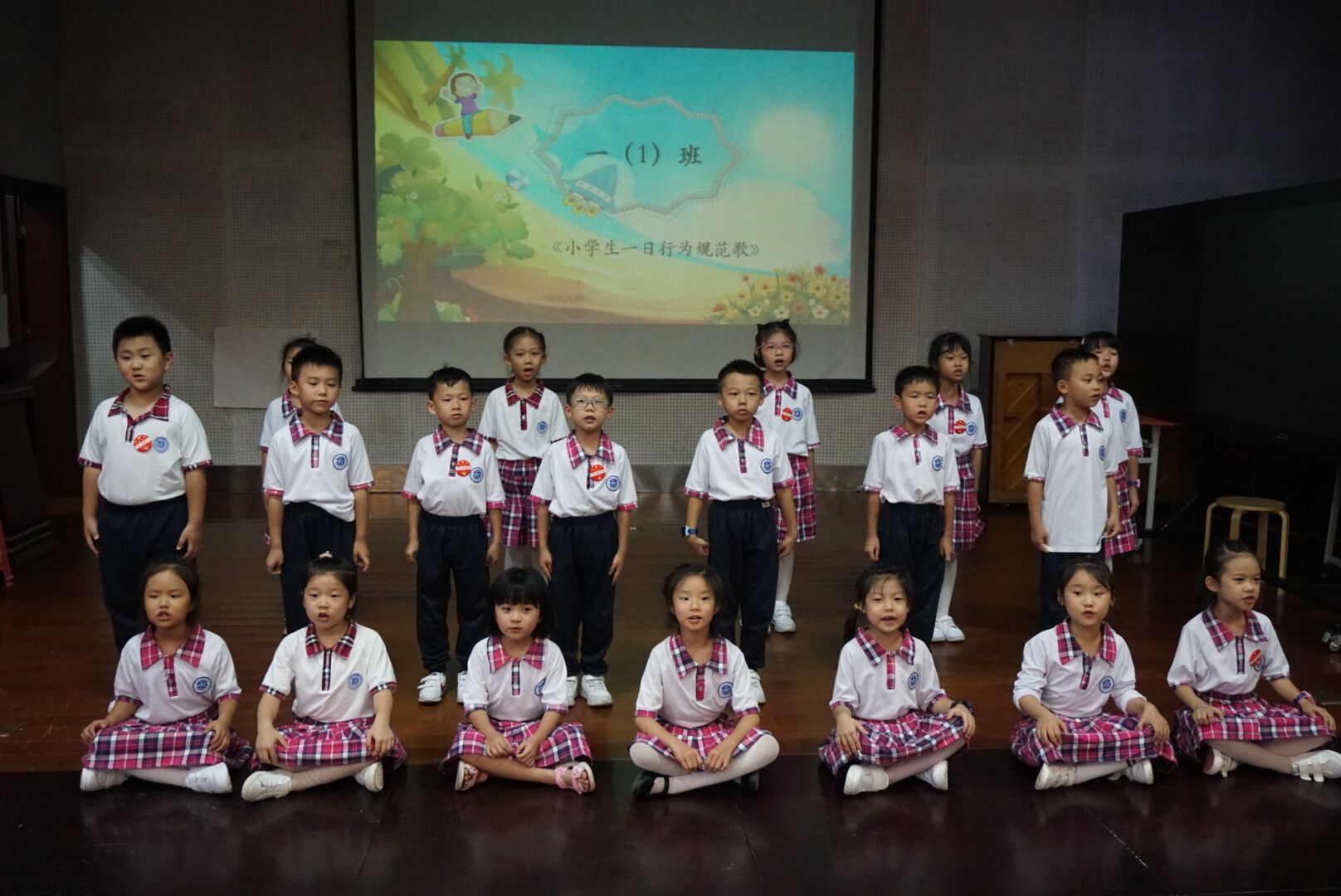 太阳照,花儿笑,—六班的同学给大家带来了耳熟能详的《上学歌》。