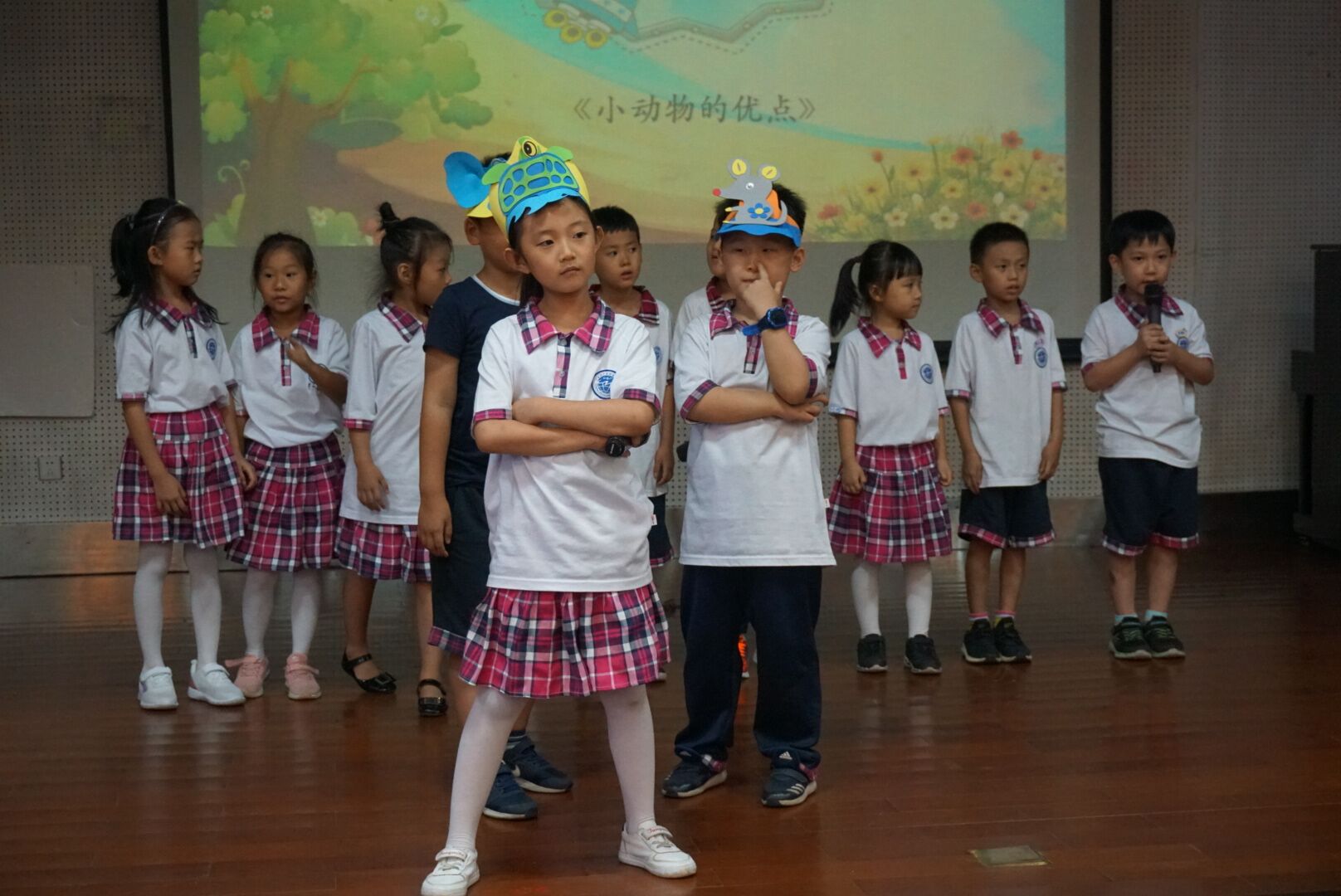 一(3)班的情景剧《小动物的优点》讲述了,动物学校里有趣的故事。孩子们听完,笑的前仰后合。