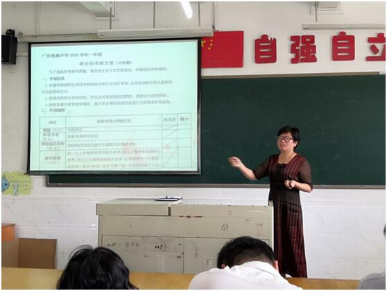 本次会议主题是中学班主任、年级组考核方案的解读。从方案实施的原则,考核的具体内容、细则以及考核的方式详细阐释了考核的具体内容,让年级级长,班主任老师们明确了考核的意义和要求,力求通过考核方案来引领班主任们的工作方向,目的是为了提高我校的教育教学质量,最大限度激发班主任工作潜能。