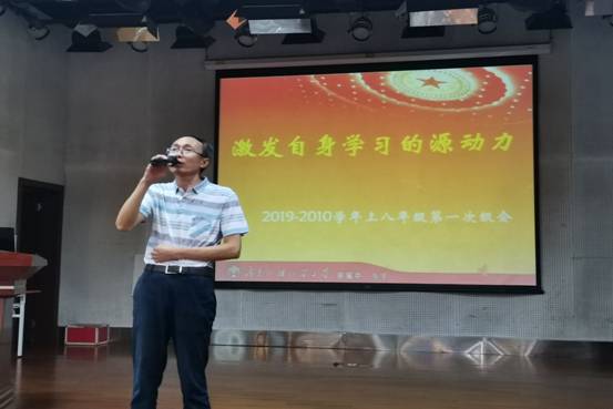本网讯 2019年10月10日下午,初二年级在云山礼堂召开本学期第一次年级级会。会议由级长程向阳老师主持,初二年级全体师生参加,学生处副主任张晓鹏与会并讲话。