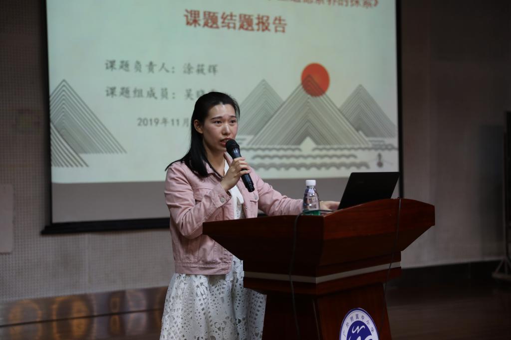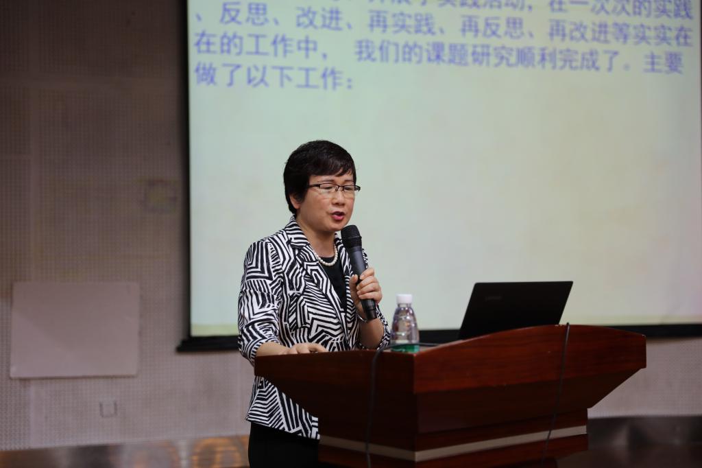 初中历史学科吴晓霞、小学语文学科范秀红两位老师作为2018年度优秀校本课题的代表,向与会教师展示了自己的课题结题报告。两位老师分别从课题研究的意义、理论依据、内容和方法、途径和步骤、成果和反思等多个方面作详细的汇报,陈述条理清晰,精彩又实在,充分展现了我校教师在校本研究领域的功力和课题研究的丰硕成果。