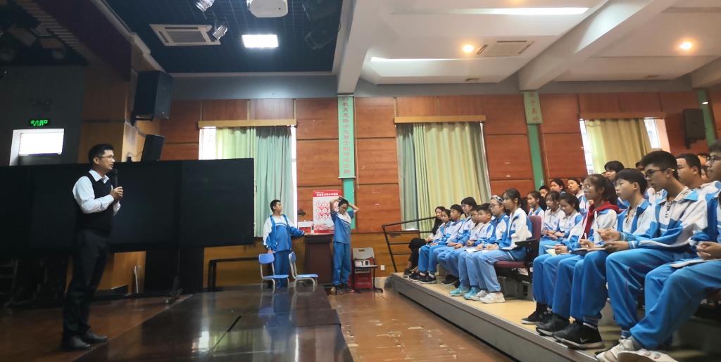 本网讯 11月26日下午,校团委召集初一初二以及初三年级入团积极分子在学校礼堂,上了一次意义非凡的团课。党支部涂筱辉书记、学生处林旭丽主任出席,团委书记王琪主持了本次报告会。