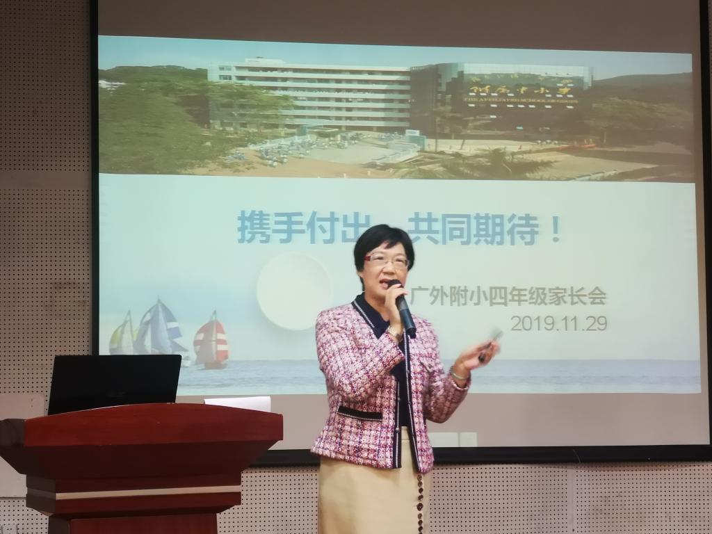 接着,学生处主任郑文静先从活动安排、课程设置两方面介绍了学校为了孩子们的全面发展所做出的方方面面的努力,然后她从四年级学习内容和心理两方面的变化谈了如何配合学校进行教育,以形成合力,共促进步。