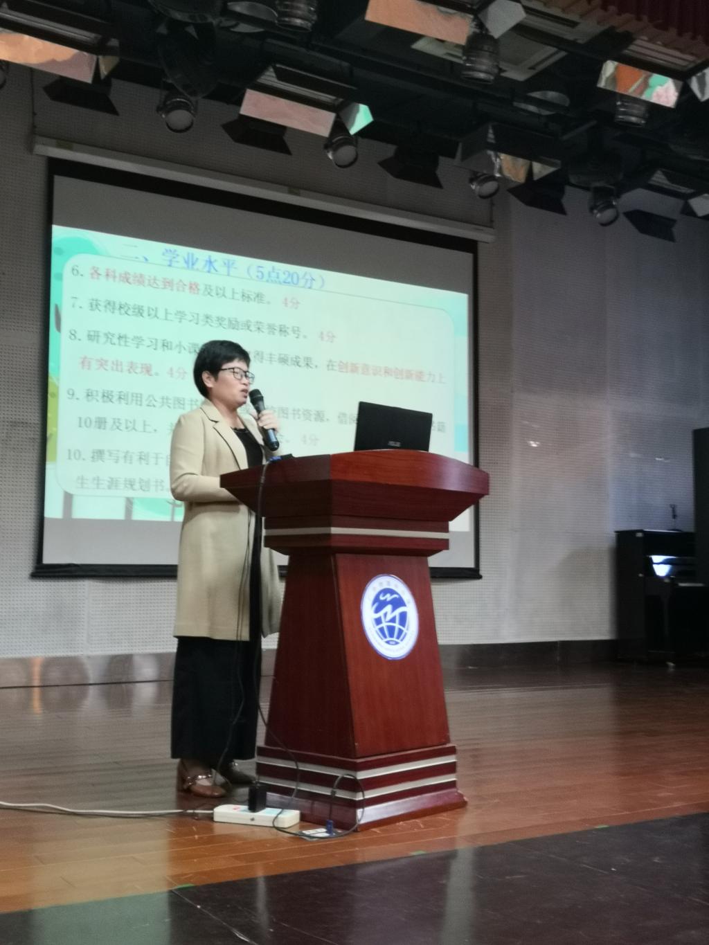 学生处林旭丽主任,就广州市初中生“综合素质评价”内容和重要性对家长作主题发言。主要包括以下五点:思想品质 、学业水平、身心健康 、艺术素养 、社会实践 。作为重要的升学指标,综合素质评价等级对于学生的升中择校有举足轻重的作用,因此,学生应重视并努力在以上五个方面竟可能获取更多学分,真正落实“德智体美劳全面发展”的要求,否则,很可能与心仪学校失之交臂。