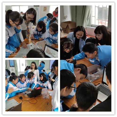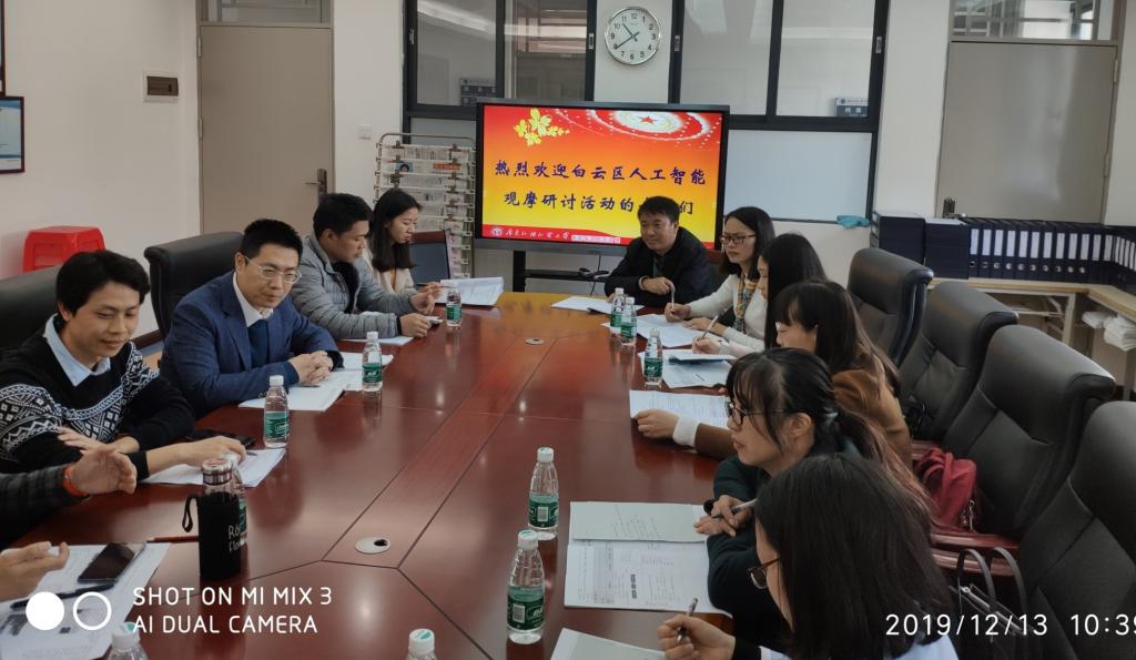 本网讯 12月13日星期五上午,白云区教育研究院信息技术科教研员王旻老师、四所人工智能试点实验学校(平沙培英中学、培英初中、白云广雅实验学校和广外附属中学)的信息科教师,以及对正在探索人工智能课程的非试点学校的教师聚集我校,观摩了我校七年级的人工智能课程并在我校举行了白云区人工智能学校研讨活动。