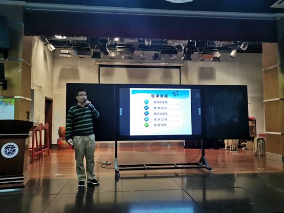 接着,5名参赛老师按顺序依次上台进行说课,在规定的10分钟内,分别从教材分析、学情分析、教学目标、教学重难点、教学过程、板书设计、作业布置等方面阐述自己的教学设计。他们慷慨激昂,激情澎湃,无论是说课稿的撰写,PPT演示的制作,还是答辩的环节,都充分展现了教师个人的风采和课堂的魅力,给评委和在场的老师留下了深刻的印象。