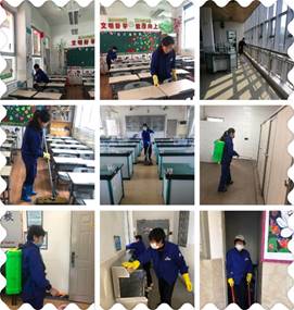 “酒精消毒液和84消毒液严禁混合使用”,“对开学后正常使用的功能室要在课间进行快速消毒”原来这是总务处保洁负责人正在对保洁阿姨进行培训;为做好校园消毒工作,总务处对保洁人员实施先培训后上岗的政策,除进行校内培训外,总务处还组织全体人员参加市、区的专项培训,通过培训掌握了专门的知识,提高了防控能力。现在学校第一轮全面消毒工作已经结束,正在对学校进行去死角的二次消毒,以期有效阻断病毒传播途径。