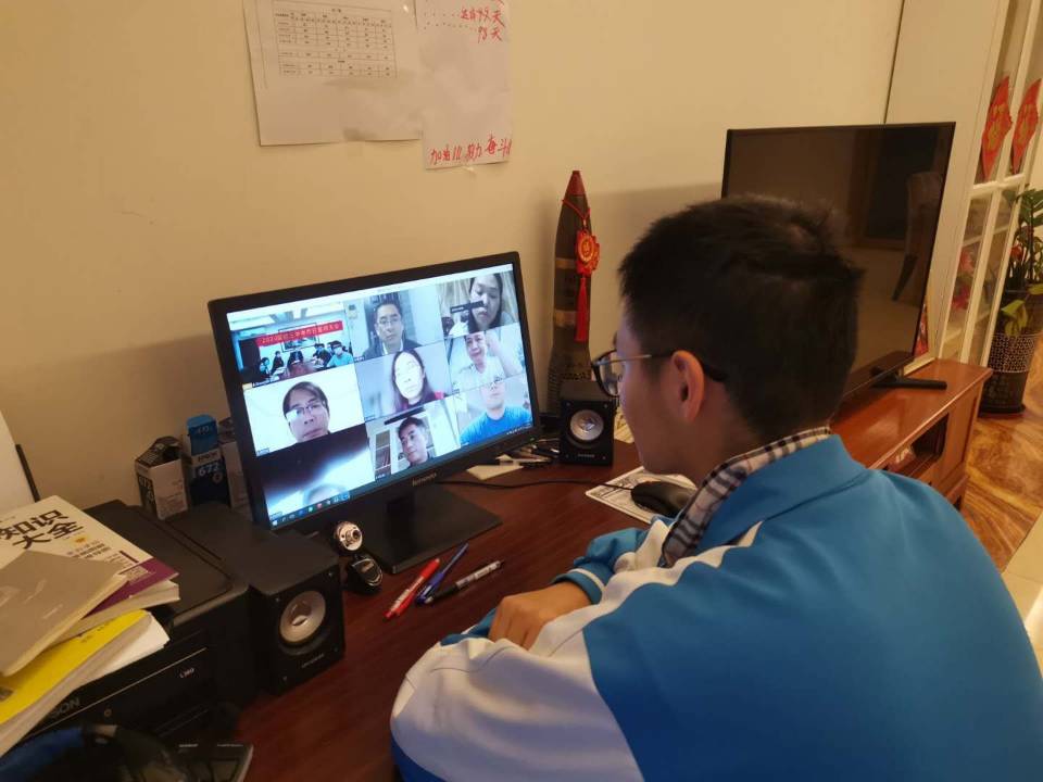 2019届优秀毕业学生刘杨线上给学弟妹们打气鼓劲及分享自己网络学习的心得,并对2020届学弟学妹致以中考的祝福。本届学生代表萧正扬表示克服一切障碍和困难,努力拼搏,决胜中考,不负青春。