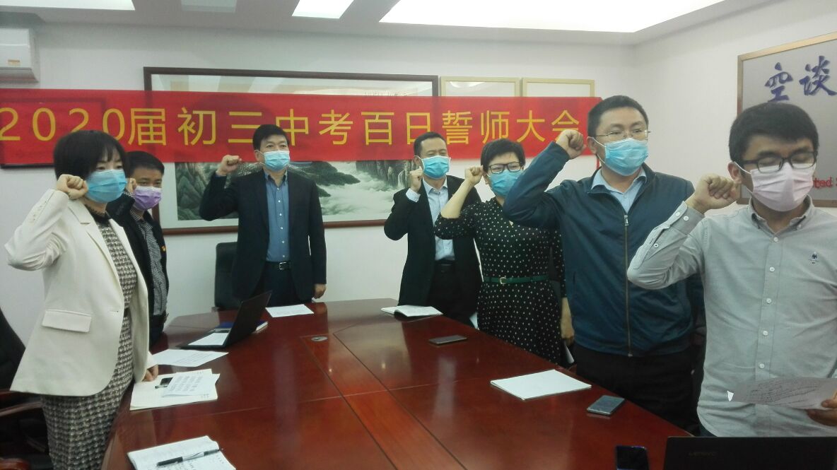 “特殊征程,关键一战;定忠职守,以身作则;燃烧年华,助力中考;风雨同舟,共创辉煌! ”大会在全体教师网络同屏齐声宣誓中落下帷幕!