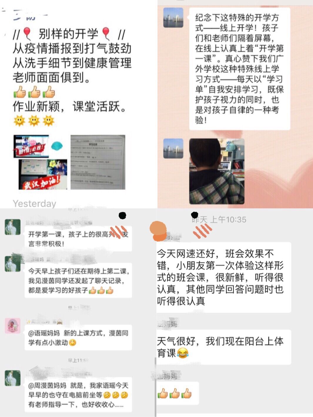 三年级有的班级还与被隔离在湖北的同学连麦,全班都倾听到从湖北传回来的心声,纷纷给湖北加油!给中国加油!同学们互相鼓励并表决心:我们窝在家里好好学习,就是对抗疫情做出的最好的行动!