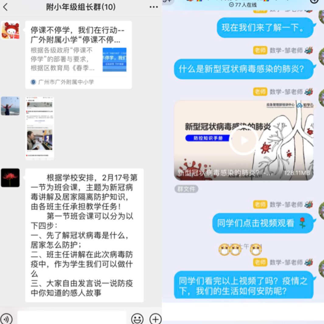 本网讯 新型冠状病毒感染肺炎的疫情牵动着每个中国人的心。在疫情防控坚战中,教育部吹响“停课不停学”的号角,广外附小积极响应。学校学生处、年级组、少先队大队部、各班班主任以“我们在行动”为主题,制定了别样的“开学第一课”。