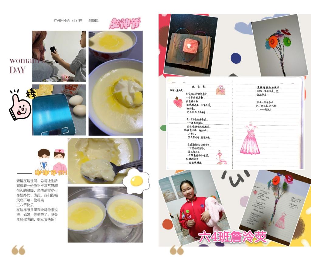 本网讯 在这暖意融融的三月, 又迎来了一年一度的“国际三八妇女节”。为了让少先队员们学会感恩、尊敬长辈,我校组织了“给妈妈(长辈)一个惊喜”三八特别活动,队员们积极响应,纷纷向妈妈、老师、长辈,以及抗疫前线的女性工作者送去真诚的祝福!