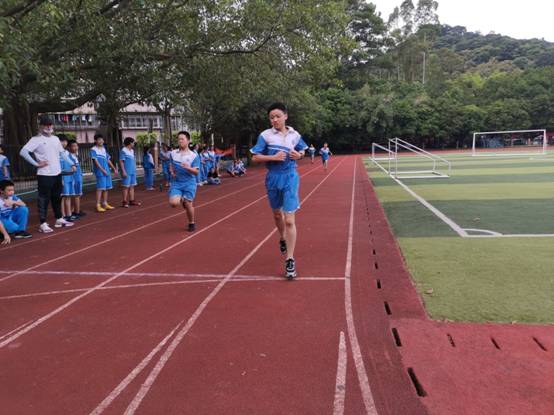 全力以赴冲过终点,展现初一学生不负韶华、努力拼搏的作风。