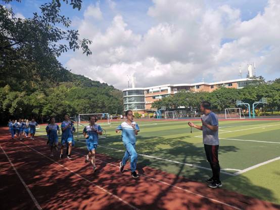 800米测试现场,老师鼓励呐喊加油!