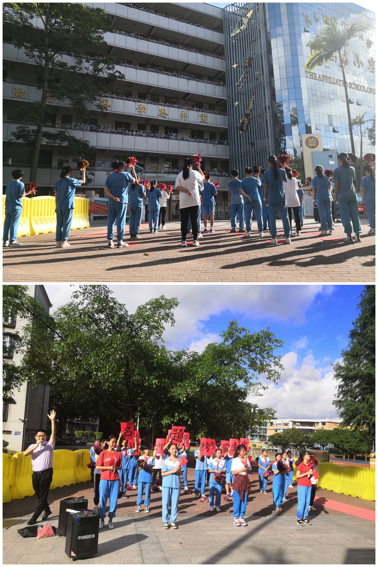 本网讯 2020年7月13日晨,当清晨缕缕朝阳映射在美丽的广外附校校园。此时的校门口,三三两两的聚起了初中生,原来他们是校团委学生干部在筹备活动,他们的举动也吸引了楼上的同学围观……