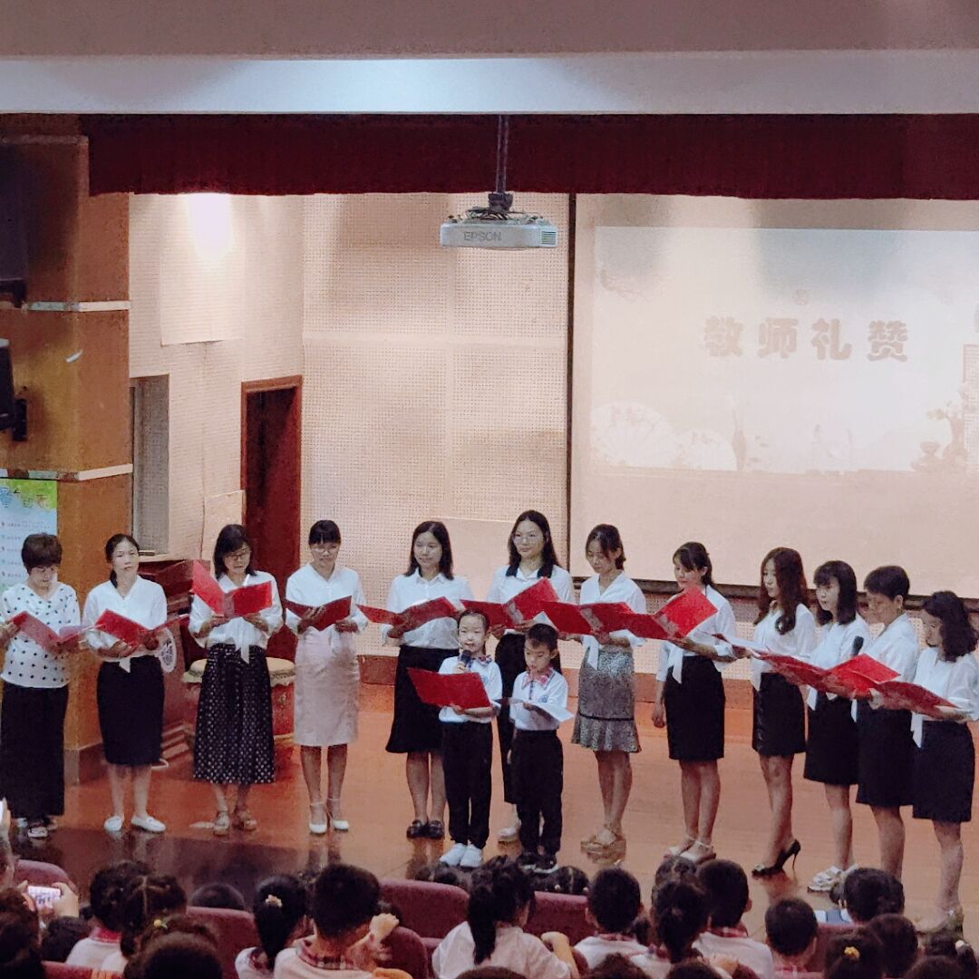 一年级任课教师齐齐上台朗诵《教师礼赞》。向全体学生和家长们表白老师的心声,每一句都饱含深情,道出了老师对孩子无私的爱。