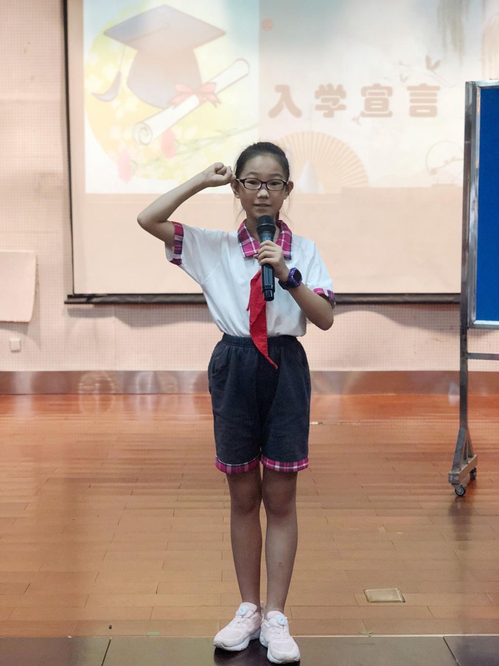 六年级学生代表徐子涵带领新同学齐诵入学宣言