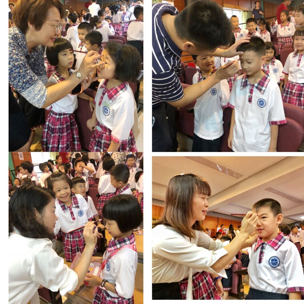 朱砂启智。学校领导及一年级正副班主任用朱砂在孩子们额头正中点上红痣,祝福孩子们从此眼明心亮,好读书,读好书。