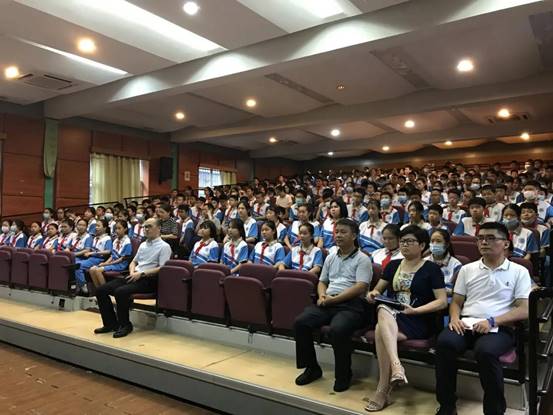 接着,学生处林旭丽主任上台发言,她从思想品德、学业水平、身心健康、艺术素养、社会实践五部分向学生们细致讲解了“广州市初中生综合素质评价”方案,同时林主任也传达了自己的希望,希望每位学生重视自身素质评价,养成良好的常规习惯。