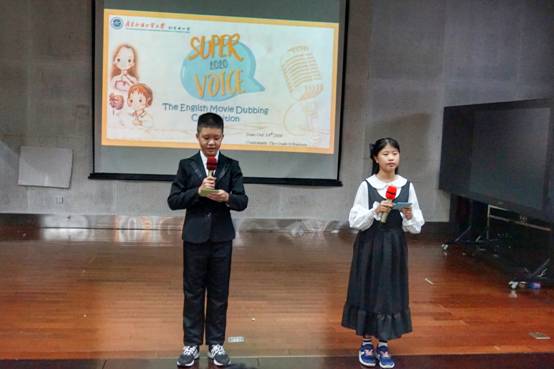 小主持人曾子堂、邓仁颍用流利的英语宣读完开场白,本次配音大赛正式拉开帷幕。