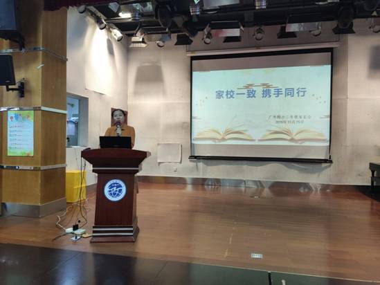 本次家长会分为两个部分。第一部分,全年级家长在云山礼堂集合,由吴玉爱校长、郑文静主任、刘靖老师给家长汇报本学期学校的工作。