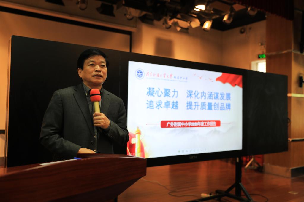 财务主管冯健敏在2020年学校财务工作报告中通报了2020年一年的主要财务工作、财务收支状况、财务运行情况,并提出未来财务工作思路与设想是优化支出结构,支持学校重点工作;积极争取提高学费,“小步快走”增加收入,让教职工真正“有感觉”。