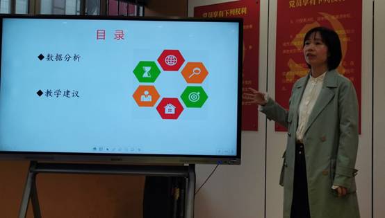 肖梅玲级长对全年级学生的成绩进行了系统的分析,并对下阶段班主任在班级常规工作管理和各学科互助合作上提出了更高的要求。