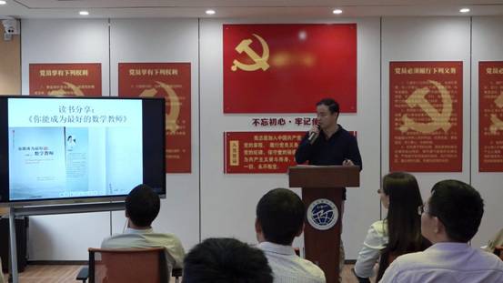 最后由数学科组的陈鑫老师与大家分享阅读《你能成为最好的数学教师》一书的体会,他提到名师成长之道就是学习之道、追赶之道、超越之道,名师更是在敬业中、反思中、研究中、实践中、创新中成长。他感悟最深的一点就是“育己”之道,“天天学习,天天进步,终身学习,终身受益,自主学习,自我发展”,这才是所有教师的进步之道。