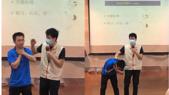 刘医生演示遇到气道梗阻时,排除气道异物的方法(海姆立克急救法)。