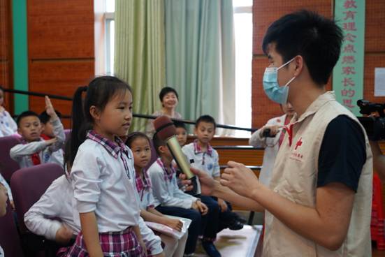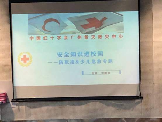 本网讯 为加强同学们安全突发事故自救知识教育,提高同学们紧急情况自救及互救能力,我们学校邀请了中国红十字会广州备灾救灾中心培训科曾赟科长一行四人到校,给二年级全体师生开展了“安全知识进校园——防欺凌&少儿急救专题”讲座与相关演示,由刘鹏程医生主讲。