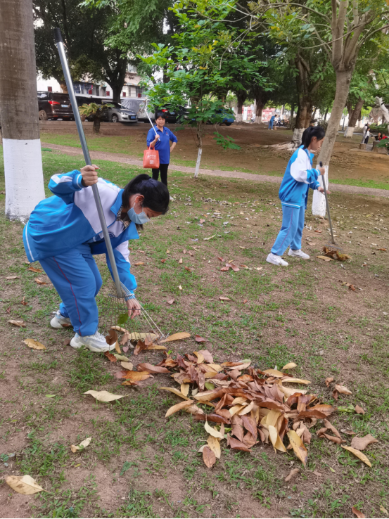 学生们对所分到的区域内进行环境卫生大扫除,充分发挥志愿者不怕苦、不怕累的奉献精神,清理杂草、纸屑、塑料袋等杂物。为大家营造了卫生健康的学习、生活环境。