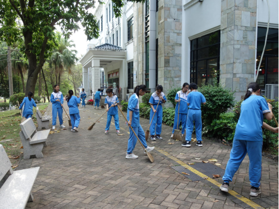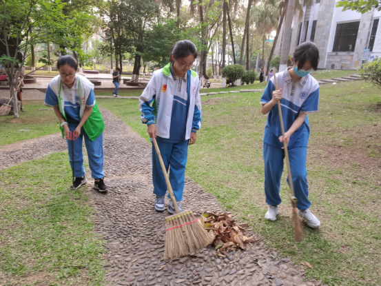 本网讯 4月3日下午,广外附中的学生志愿者参加了广外大社区居委发起的“爱卫大扫除志愿服务活动”。