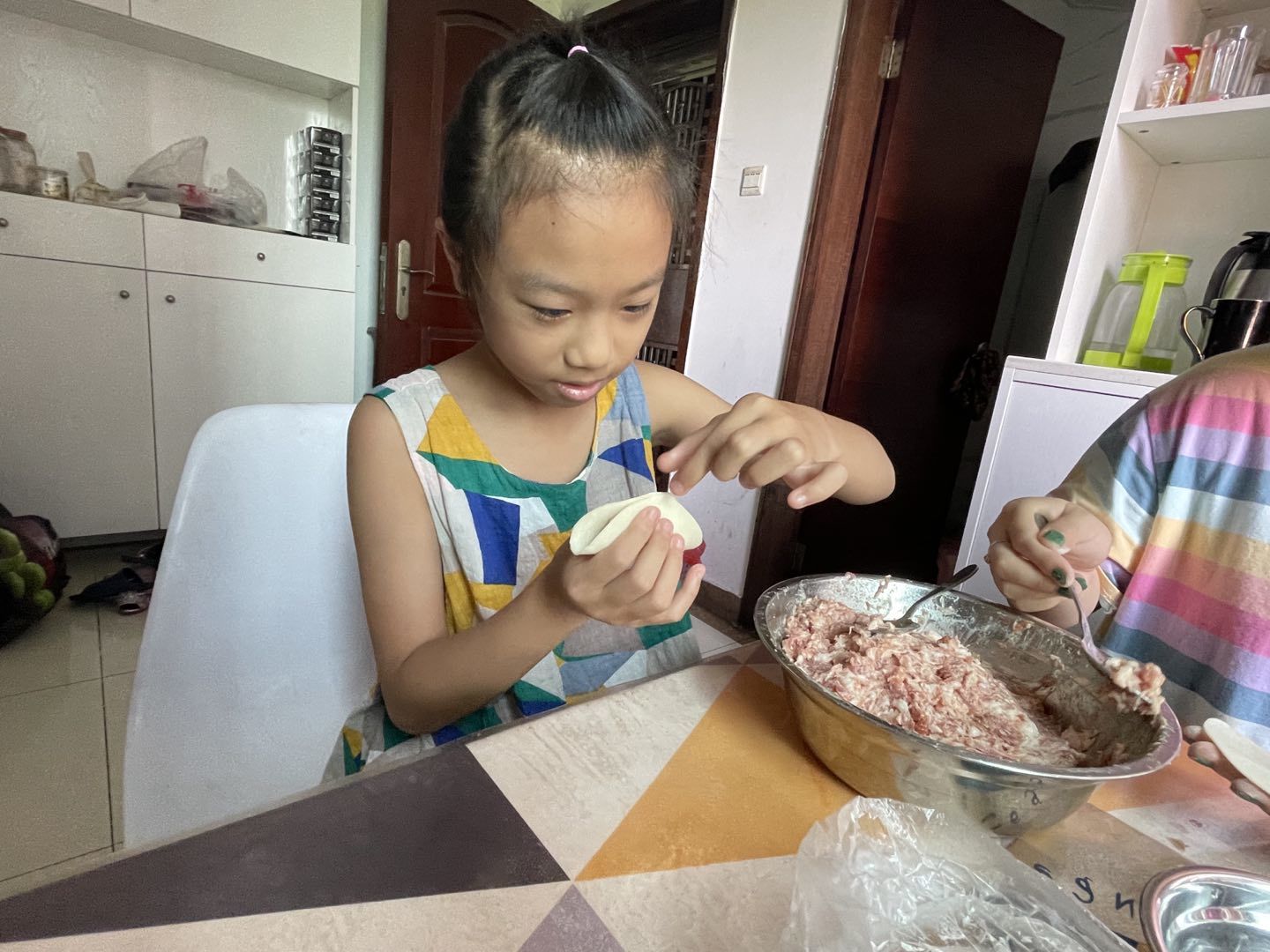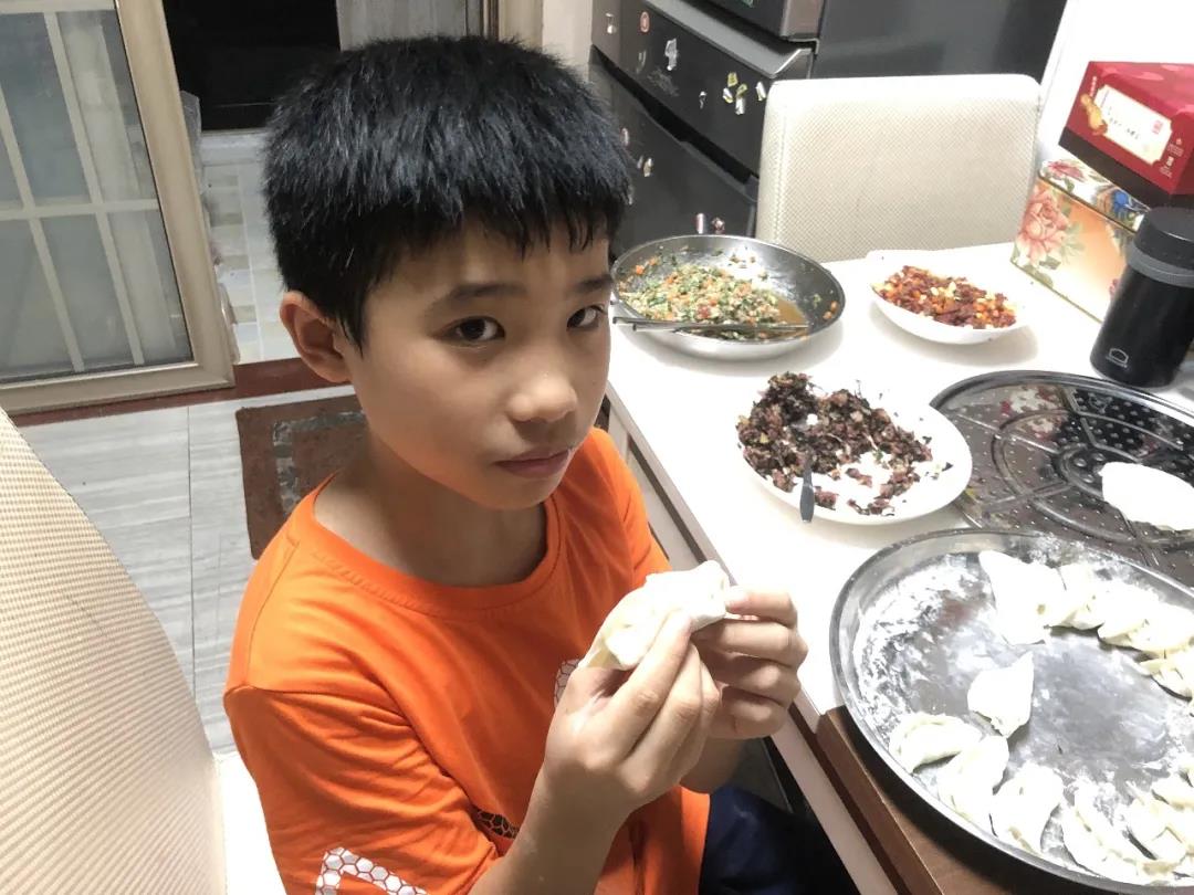 我是颜智烨。今天我和妈妈做了一顿美味的晚餐,有饺子、煎饼和面条。