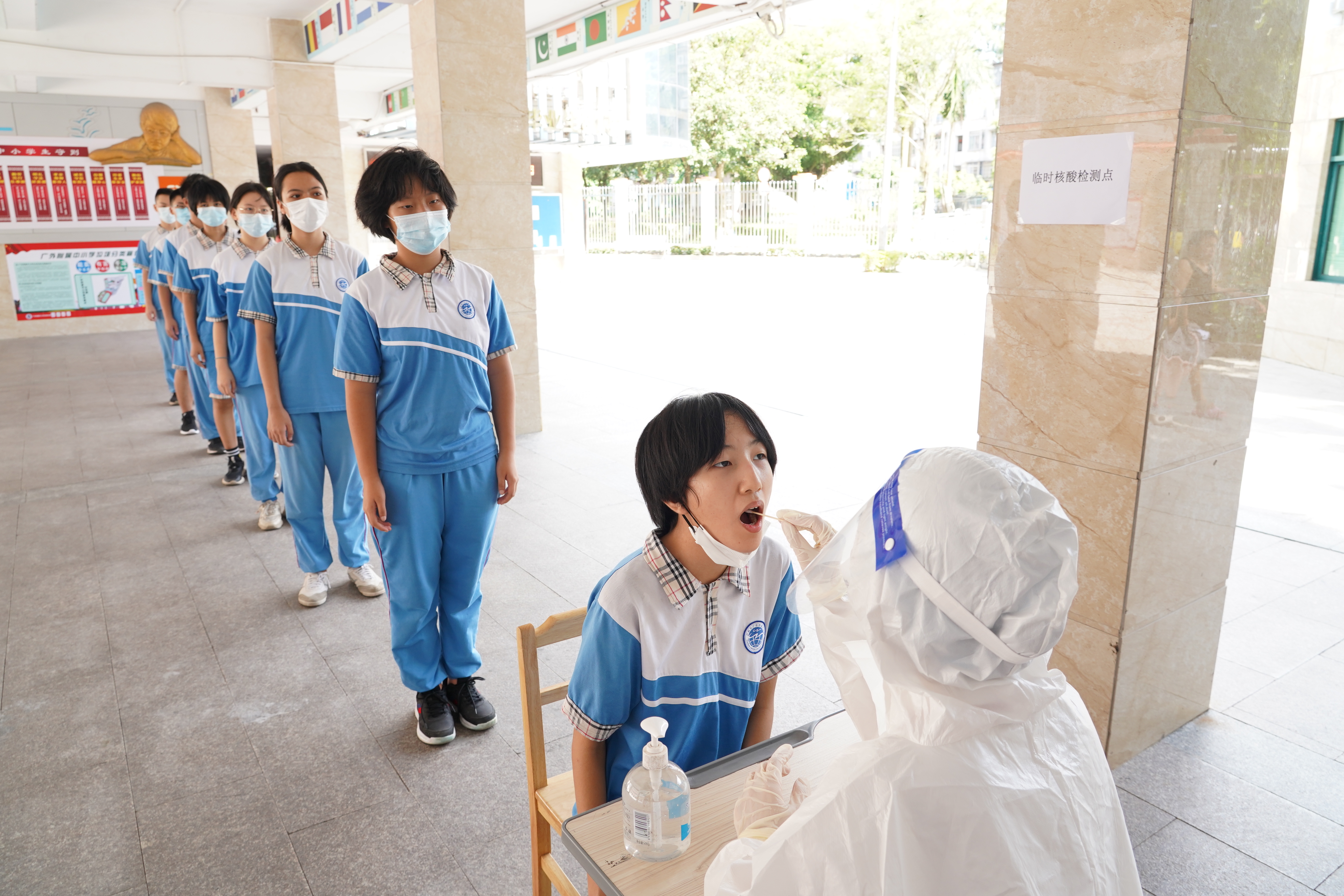 现场模拟演练学校接到社区医院通知,我校一名学生在某社区居民核酸筛查中核酸检测结果为阳性。 “初一某班学生李某昨晚在社区的全员核酸检测结果呈阳性,现在马上指引该生到隔离室……” 随即,学校立刻按照《广州市学校防控新冠肺炎疫情应急处置预案(试行)》要求,启动学校新冠肺炎疫情防控处置应急预案,应急领导组、疫情上报组、物资保障组等6个工作组均马上启动工作。